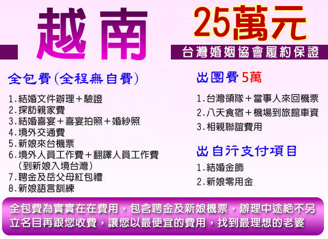越南至少要去三趟,約六個月辦理手續完成,新娘就可來台灣
